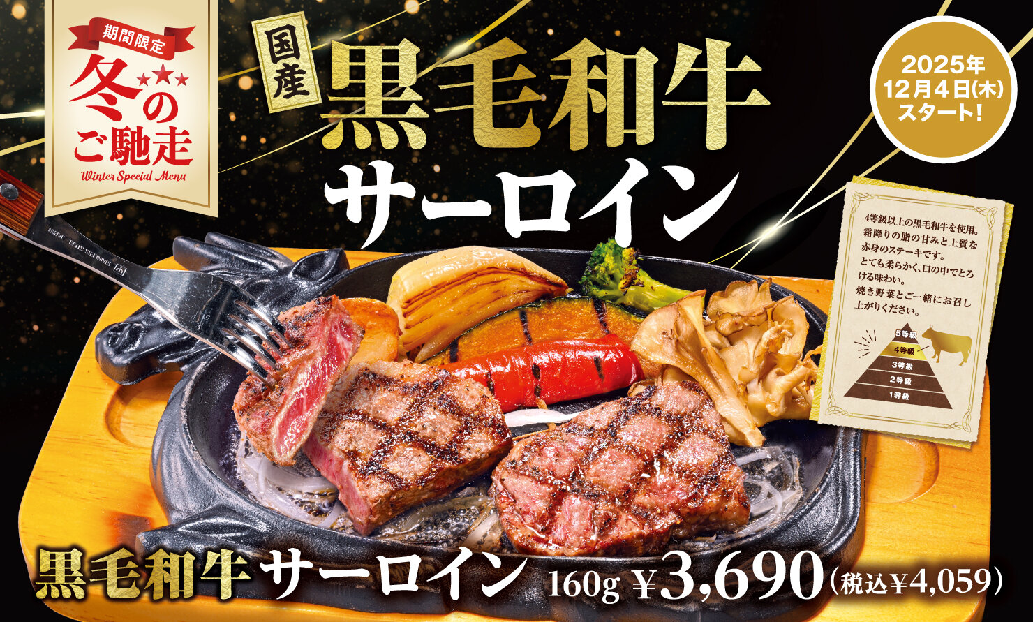【フェア情報】「国産黒毛和牛サーロインフェア」、12月4日(木)より開催!