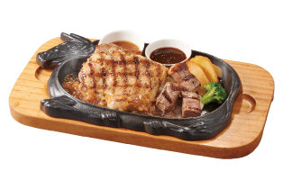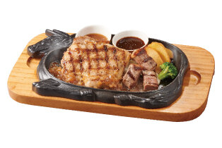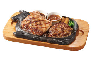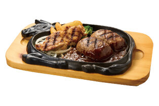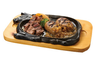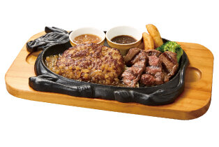 ハンバーグ150g、アンガスサーロイン60g