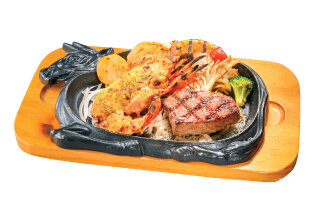 ※ステーキは卓上コンロでお好みの焼き加減に焼いてお召し上がりください。