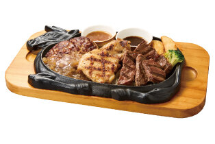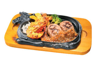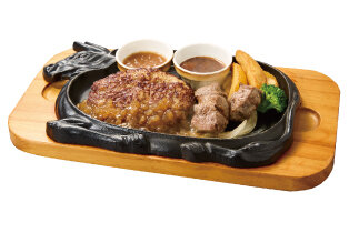 ハンバーグ150g、カットステーキ80g