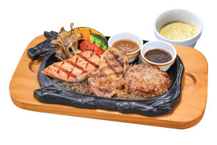ハンバーグ100g、チキン100g、カットステーキ80g