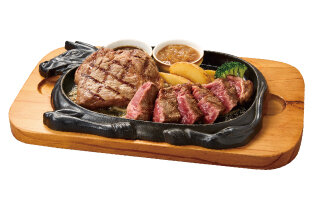 リブロースステーキ150g、ハンバーグ100g